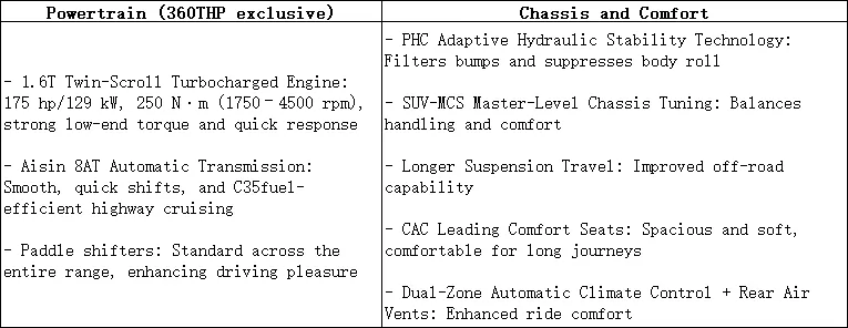 | Основные параметры | Citroën C5 AIRCROSS 2026 года с обновлённым дизайном, мощностью 360 л.с., в версии Smart Edition | Tianyi C5 AIRCROSS 2026, версия Smart Edition, мощность двигателя — 360 л.с |